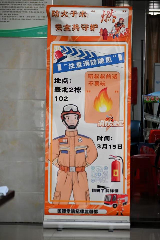 活动主要分为两个环节。首先是实地查找消防安全隐患。参与同学需要识别日常生活中可能存在的安全风险,如使用大功率电器未及时断电、电线老化、在易燃物附近使用明火等问题。其次,现场还设置了消防标识学习环节,帮助同学们熟悉常见的安全标识及其用途,如紧急出口指示、灭火器使用规范等,进一步提升应对火灾的基本素养。