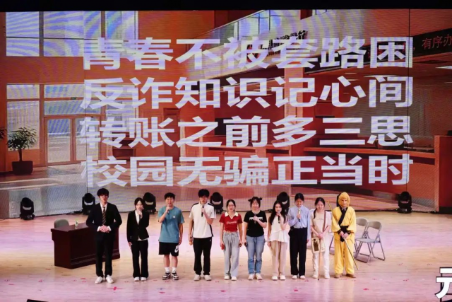 晚会在热烈的气氛中拉开帷幕,首先登场的是由TDH街舞社成员带来的暖场舞蹈《Wayup》,他们用动感十足的舞蹈迅速将晚会氛围调动起来。接着晚会随《世界赠予我的》的悠扬旋律正式开始。歌曲《凄美地》彰显了校园青春的绚丽与张扬,吸引了全场观众的目光。舞蹈《ForeverYoung》将观众手中的星光灯与舞姿交织,既是对校园时光的深情告别,更是向未来的勇敢宣言。歌曲《飞云之下》歌声悠扬,“云层之上有星光”倾诉着对四年同窗的眷恋,“迷雾尽头是远方”传递出破风前行的勇气。舞蹈《SweetSin》以街舞燃爆舞台,高难度技巧诠释街舞魅力;校艺术团月影话剧社的《反诈银行》将诈骗案例融入喜剧,在欢笑中传递实用的反诈知识。