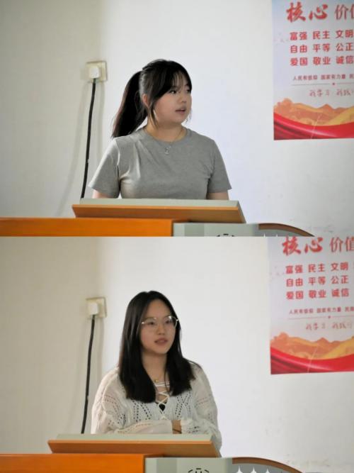 国家奖学金获得者、推免至浙江大学的储宁蔓,围绕“保研与留学的平衡之道”展开分享,从院校选择、时间规划到材料准备,细致拆解双轨发展的关键要点;国家奖学金获得者、推免至厦门大学的胡俊杰,积极传授论文写作技巧与竞赛备赛经验,鼓励学弟学妹勇于挑战,敢于追梦。两位国家奖学金获得者,分享了获得国家和学校资助的深切感受,储宁蔓谈到,这不仅是对她学业的肯定,更是一份沉甸甸的责任,让她在探索学术的道路上少了后顾之忧,能够全身心投入到科研与竞赛中。胡俊杰则表示,学校的资助让他敢于在论文写作与竞赛备赛中挑战自我。他鼓励学弟学妹们积极争取资源、勇于追梦,“当你为了理想全力以赴时,你收获的不仅是荣誉,更是不断超越自我的勇气和信心。”